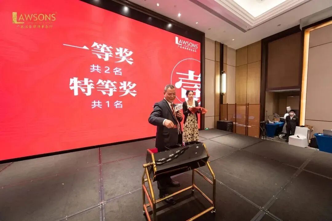 在文艺表演中,穿插了大家最期待的抽奖环节,更有特别嘉宾广东宏安信律师事务所副主任童鸿飞律师加码的大奖!