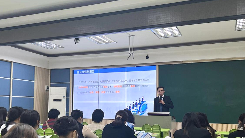 2023年3月3日下午,广东诺臣律师事务所(以下简称“诺臣所”)高级合伙人,广州市政协委员郑子殷律师受邀前往芳村小学,为老师们进行授课,带来《学校、幼儿园的法定义务——强制报告》主题讲座。