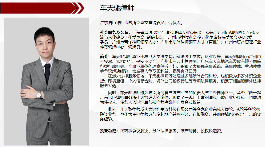 车天驰律师表示,将不断提高自身涉外法律法律服务业务水平,为融入“一带一路”和粤港澳大湾区建设贡献力量,展现广州涉外律师的良好形象!