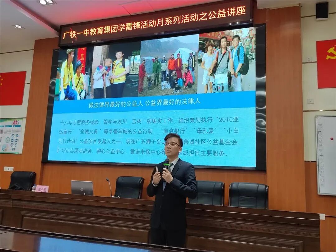2023年3月15日,广东诺臣律师事务所高级合伙人郑子殷律师应广州市铁一中学邀请,为铁一的孩子带来一节特别又生动的课堂,讲述他作为一名“律师”和“公益人”的故事和感悟,让大家重新思考这个厚重的生命议题的答案。
