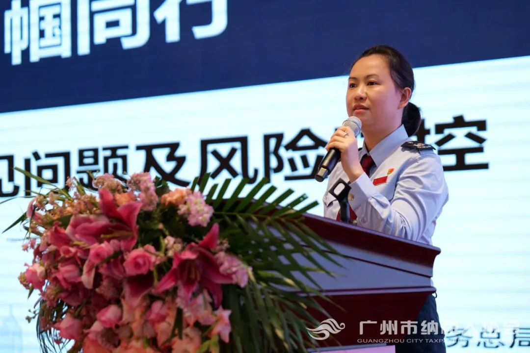 现场除了各行各业的企业家,也邀请到了国家税务总局广州市税务局纳税服务处一级主任科员崔博禹、市税务局稽查局四级调研员李庆兰、市税务局稽查局二级主任科员蒙亮出席会议。蒙亮女士在现场就税务稽查常见问题及风险防范主题作了详细讲解。全程干货满满,让广大企业家代表们收获良多。