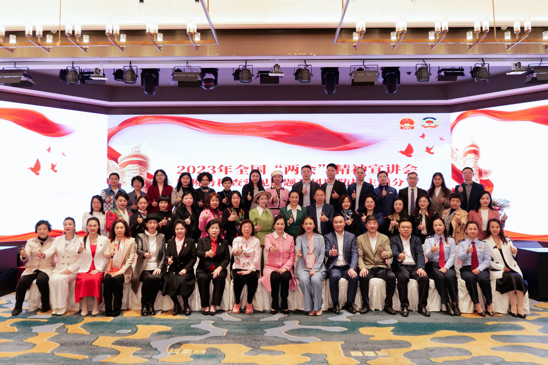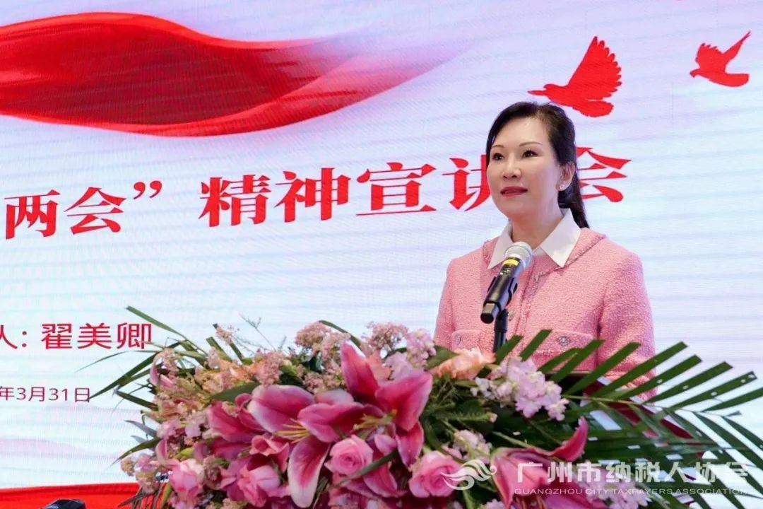 会上,全国政协委员、广州市纳税人协会会长、广东省女企业家协会会长、深圳市侨商国际联合会会长、香江集团总裁翟美卿,全国人大代表、广东省女企业家协会副会长、广州市纳税人协会高级顾问、国众联集团董事长黄西勤作为主讲人,为参会的企业家及企业党团员分享参加2023年全国“两会”的感受体会和学习心得。