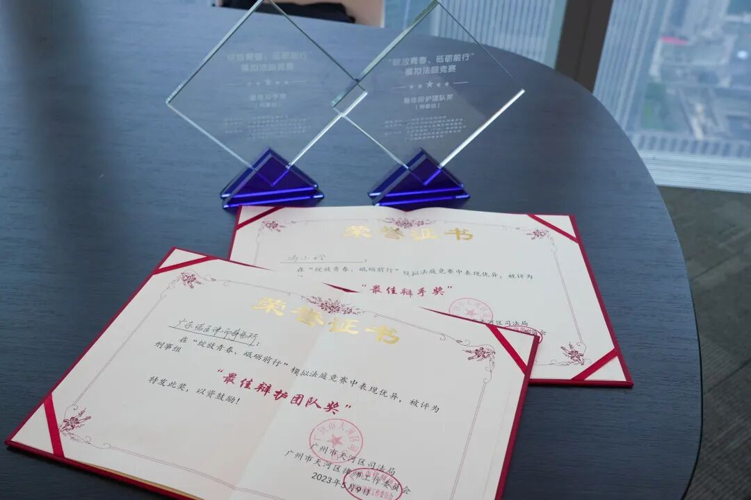 2023年5月9日,在广州市天河区司法局的指导下,由广州市天河区律师工作委员会、天河中央商务区南区联合党委主办,广东诺臣律师事务所(以下简称:诺臣所)、北京市盈科 (广州) 律师事务所、广东君信经纶君厚律师事务所联合承办的“绽放青春,砥砺前行”模拟法庭竞赛活动在广州国际金融中心党群服务站圆满举行。天河区司法局副局长李捡、律管科科长黄亮等一众嘉宾出席了活动。