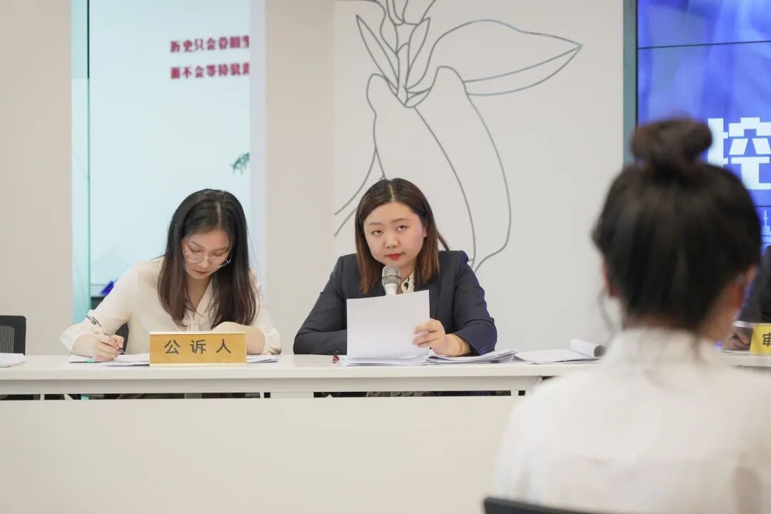 书记员宣读法庭记录后,审判长张卉宣布开庭。公诉人宣读起诉书后,控辩双方就本案各自发表意见,其次双方争议焦点明确后,双方针对争议焦点再次进行辩论,在这个环节,双方都表现出扎实的法学专业功底,出色的应变能力,即使是在气氛紧张的赛场上,也能沉着冷静围绕证据进行有效控辩,引用法律法规进行机智回应。