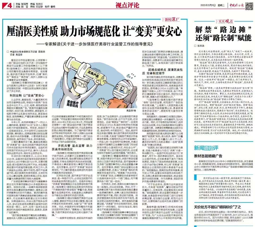 近日,市场监管总局、公安部、商务部、国家卫健委等多部门联合发布《关于进一步加强医疗美容行业监管工作的指导意见》。5月9日,广东诺臣律师事务所(以下简称“诺臣所”)医疗与健康事务部主任、合伙人刘芳律师接受中国妇女报采访,解读《关于进一步加强医疗美容行业监管工作的指导意见》。