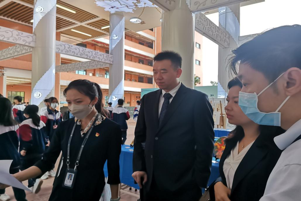 讲座开始前,该校伍主任带领麦佳耀律师团队谢晓梅总监及刘珒律师等人一同参观该校学生在“数字商务文化节”上展示的精美作品及专业比赛,期间文化节的指导老师为到访人员讲解作品的创作背景及意义。