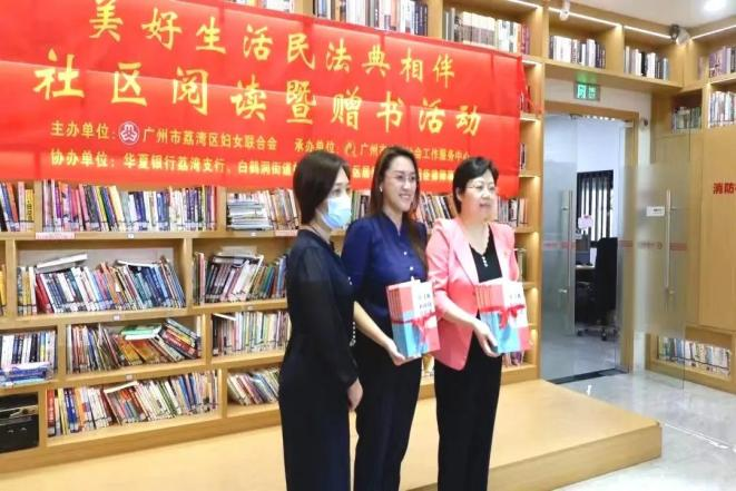 陈冰华律师在活动现场作为代表向荔湾区妇联赠送的我所编著《民法典新规则全知道》(中国法制出版社出版)10本。