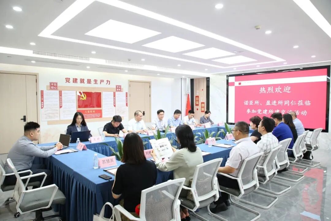 为实现优势互补,交流促进业务,努力构建“资源共享、优势互补、互相促进、共同提高”的工作新格局,2023年7月10日,广东诺臣律师事务所(以下简称“诺臣所”)受邀到广东凯行律师事务所(以下简称“凯行所”)进行党建、所建交流活动。