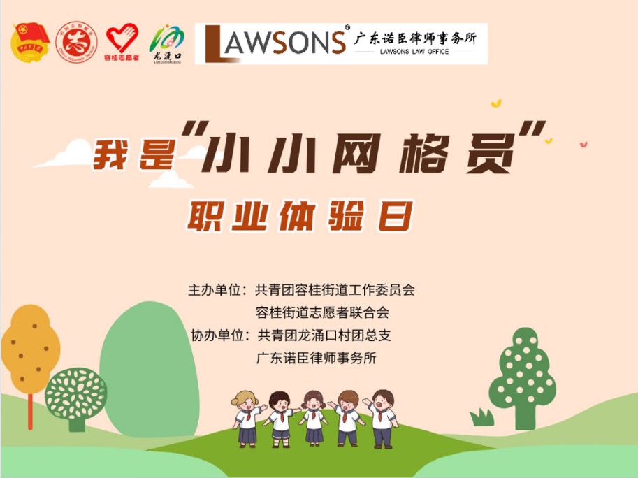 2023年8月4日,广东诺臣律师事务所黄宇莹律师团队应共青团容桂街道工作委员会邀请参加由共青团容桂街道工作委员会、容桂志愿者联合会主办,共青团龙涌口村团总支、广东诺臣律师事务所协办的“我是‘小小网格员’职业体验日”活动。