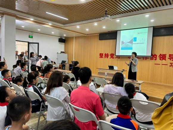 黄宇莹团队的陈俊沙实习人员随后向同学们提供了作为未成年人如何参与到水污染防治中来的方法,在现场和同学们分享水资源重复利用小妙招,例如洗衣服的水可以用来拖地,淘米水用来浇花,洗脸水用来冲厕等现场的互动问答环节激发了孩子们的学习兴趣和参与热情,同学们积极分享自己如何在日常生活中践行低碳环保,现场气氛热烈。