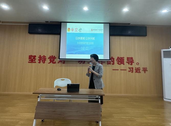 活动中黄宇莹律师团队以“以水美城,以水兴城”为题进行水资源保护普法讲座,为到场的40余组家庭提供一场别开生面的普法活动。