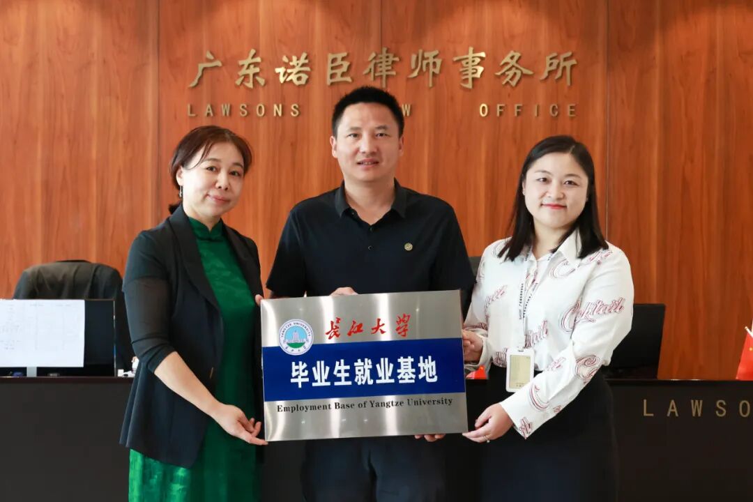 2023年10月14日,长江大学法学院与广东诺臣律师事务所(以下简称“诺臣所”)联合共建毕业生就业基地签约授牌仪式在诺臣所顺利举行。