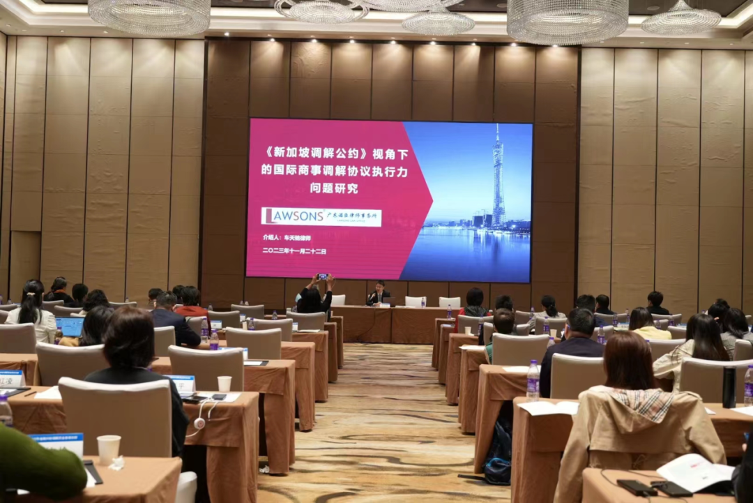 22日上午,我所合伙人车天驰律师受邀为培训人员以“《新加坡调解公约》视角下的国际商事调解协议执行力问题研究”为主题进行讲授。车律师分析了国际商事调解协议及我国有关调解制度的相关要点,深入浅出地阐述了《公约》与中国现行法下调解协议执行的衔接困境,提出了相关衔接思路。培训现场气氛热烈,课间互动频繁,与会人员纷纷表示在此次培训中自身的业务能力有所提高,调解员队伍的凝聚力与创造力也得到增强。