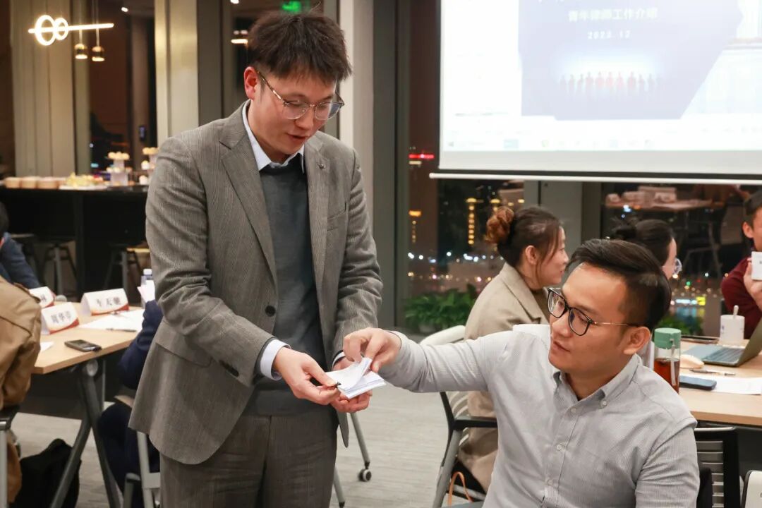 以圆桌形式讨论青年律师和律所管理层面临的一些热门话题是本次座谈会的亮点之一,小组成员仅仅围绕青年律师如何独立、如何选择业务方向、维护客户和律所如何吸引、留住人才等方面展开讨论,讨论后每个小组派一名代表分享小组的成果。