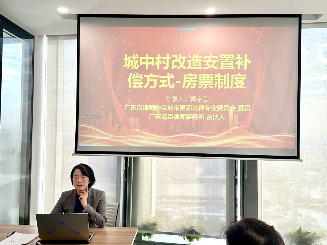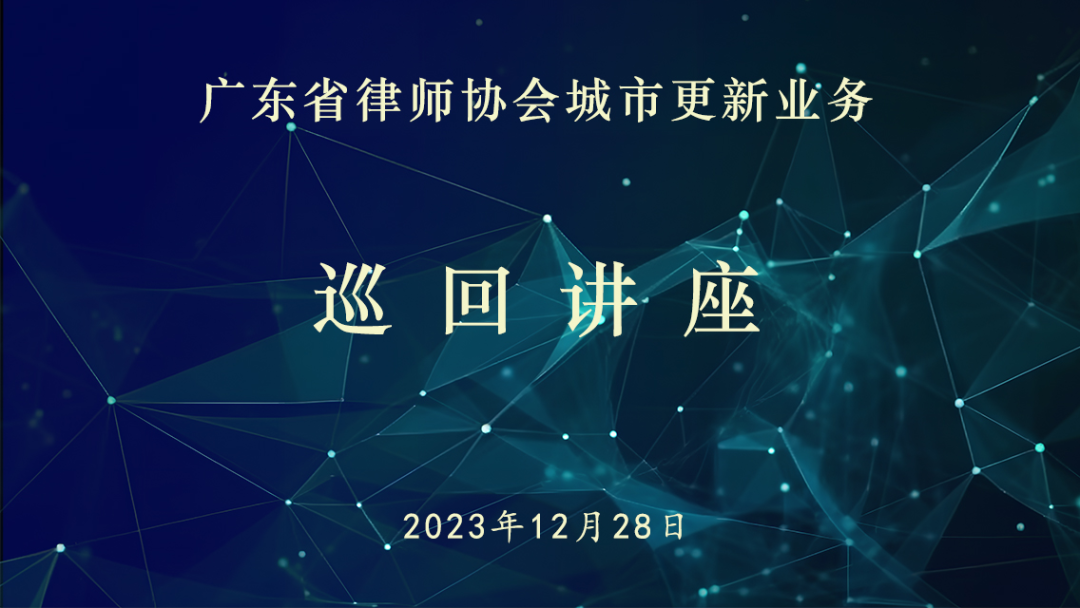 根据广东省律师协会城市更新法律专业委员会的部署,2023年12月28日下午,广东诺臣律师事务所高级合伙人、广东省律师协会城市更新法律专业委员会副主任黄家章律师和广东诺臣律师事务所合伙人、广东省律师协会城市更新法律专业委员会委员黄宇莹律师在广州市珠江新城周大福金融中心31楼(广东诺臣律师事务所)担纲主讲城市更新业务巡回讲座。