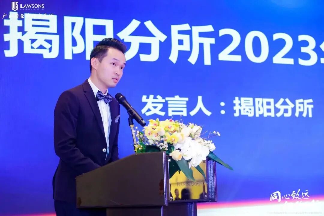 紧接着,诺臣白云分所主任黄家章、揭阳分所代表陈正辉律师为大家分别作2023年度白云分所工作报告、2023年度揭阳分所工作报告。