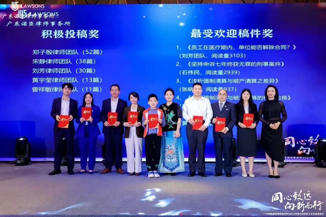 夜幕降临,华灯璀璨,在热烈的掌声中“同心致远,向新而行”广东诺臣律师事务所2023年度总结表彰大会暨迎新晚会在广州四季酒店正式开始。今晚,我们法律之子欢聚一堂,用诺臣人的传统晚宴告别过去,拥抱未来。