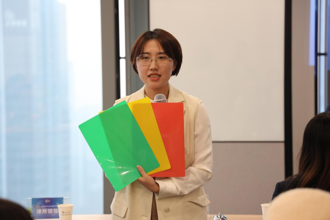 诺臣所合伙人苏于国律师、岑曦蕾律师相继上台发言,他们分享了自己宝贵的职业经验和心得体会。他们用自己的故事激励着学生们坚定法律信仰,追求卓越。在他们的言辞中,学生们感受到了法律人的使命与担当。紧接着,活动促进者详细介绍了即兴演讲和备稿演讲的规则和要求。他们以专业而理性的态度指导学生如何准备演讲内容,并提升口头表达能力。