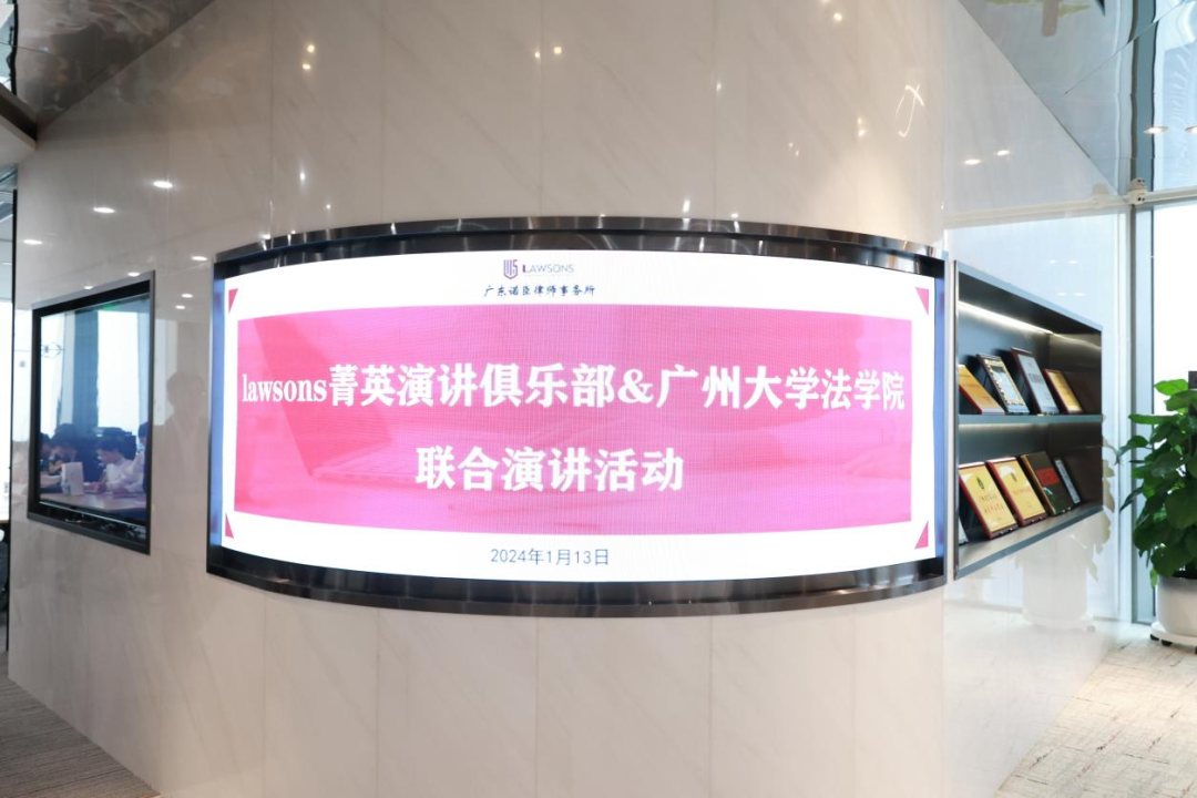 2024年1月13日傍晚,广东诺臣律师事务所(以下简称“诺臣所”)青年律师工作委员会下属Lawsons菁英演讲俱乐部与广州大学法学院(以下简称“广大法学院”)共同举办了一场高水平的联合演讲活动。此次活动的举办,旨在增进双方交流与合作,同时为学生们提供一个展示自我和锻炼口才的平台。