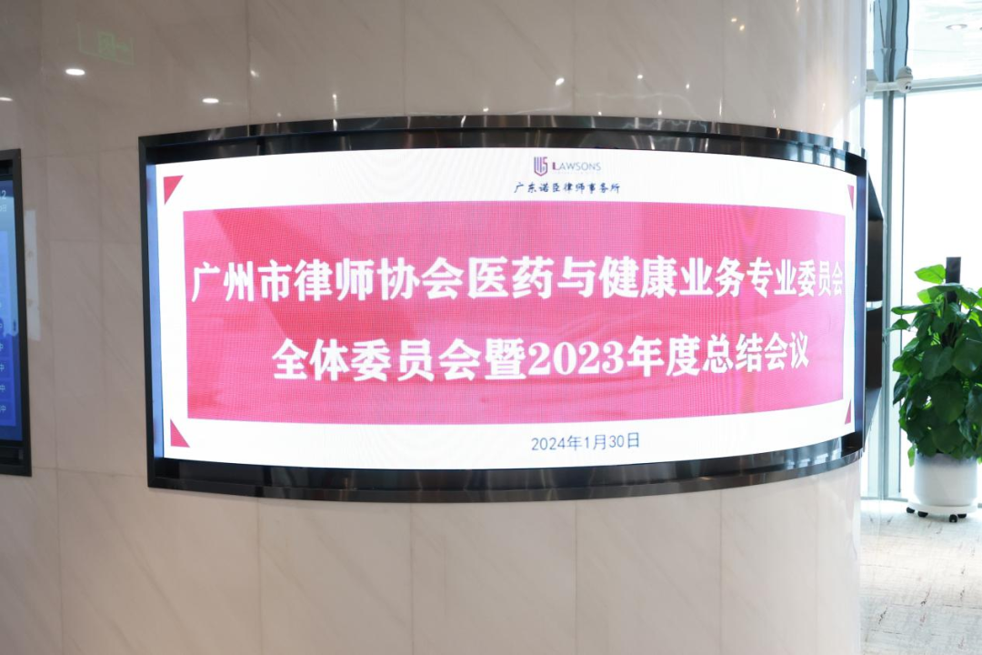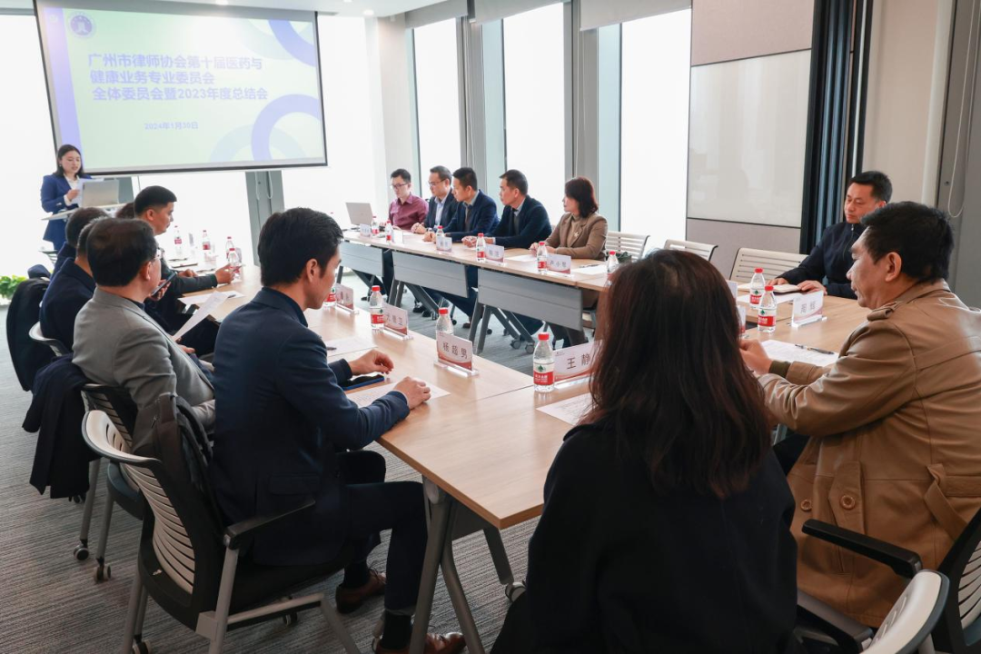 2024年1月30日下午,广州市律师协会医药与健康业务专业委员会全体委员会暨2023年度总结会议在广东诺臣律师事务所(以下简称“诺臣所”)会议室隆重举行。莅临本次会议的嘉宾有:广州市律师协会副会长余苏、广州市律师协会监事李苏、业务研究与培训工作委员会副主任杨超男,医药与健康业务专业委员会周辉主任、尤德卫副主任、朱秀恩副主任、刘芳副秘书长及一众委员。诺臣所管委会副主任王静律师参会并向与会嘉宾致欢迎辞。本次会议由刘芳律师主持。