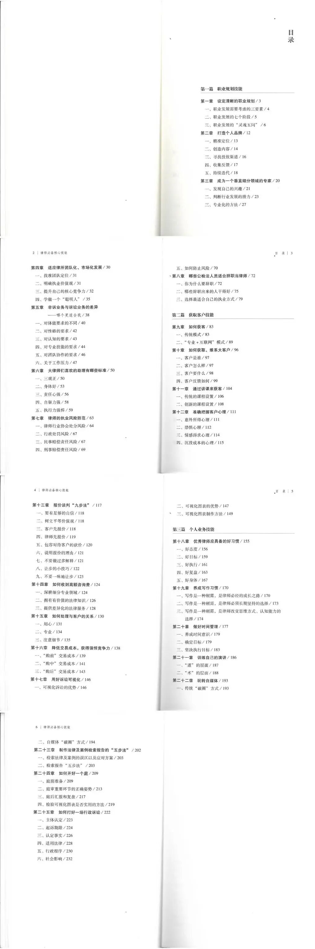 这本书的内容涵盖律师职业的方方面面,从职业认知、职业规划、业务技能、个人技能,到品牌建立与团队管理,将律师这个职业的全貌揭示出来。