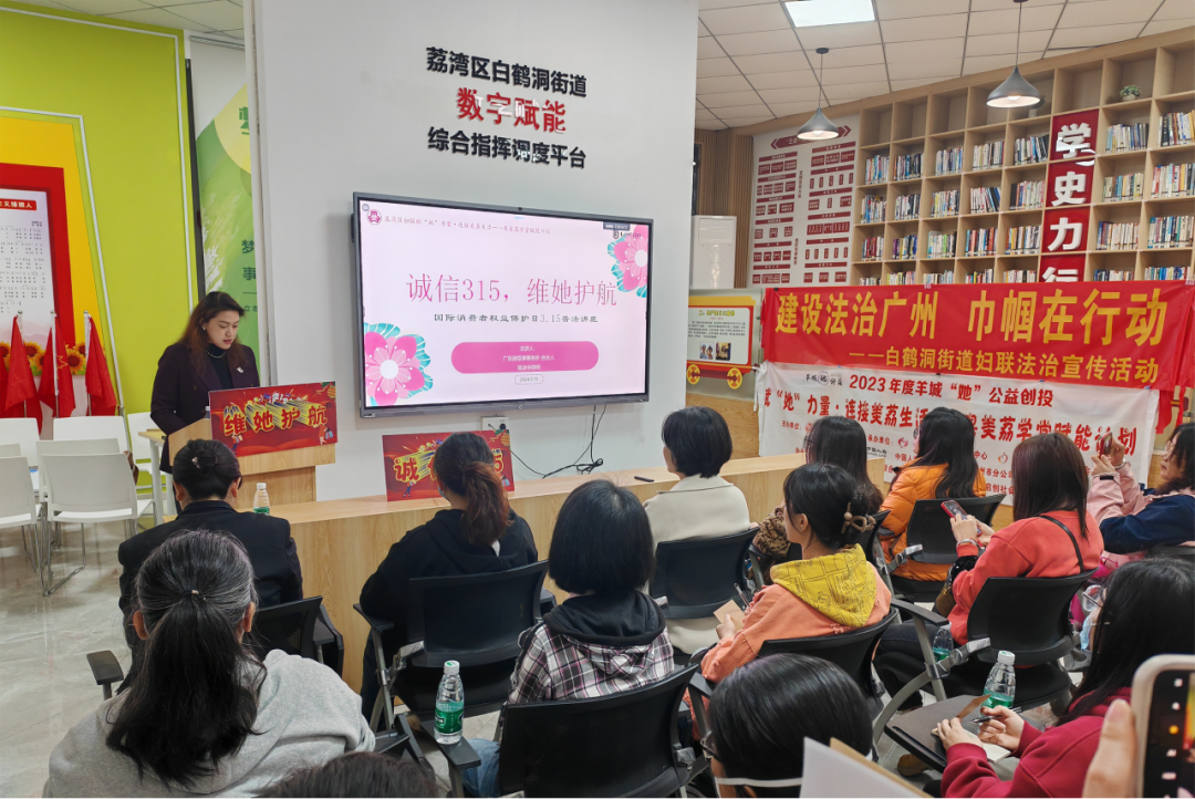 2024年3月15日,在广州市妇联和荔湾区妇联的指导,广州市妇女儿童发展中心、广州市妇女儿童福利会、中国人寿保险股份有限公司广州市分公司、白鹤洞街道妇联、海颂社区妇联的支持下,陈冰华律师在赋“她”力量·连接美荔生活的培训中开展了“诚信315,维她护航”的专题讲座。