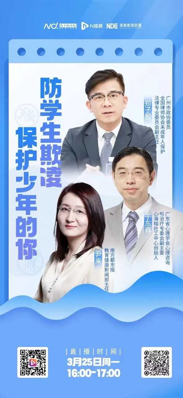 3月25日,郑子殷律师受南都校探邀请做客「防学生欺凌 保护少年的你」直播间,探讨如何防范学生欺凌。
