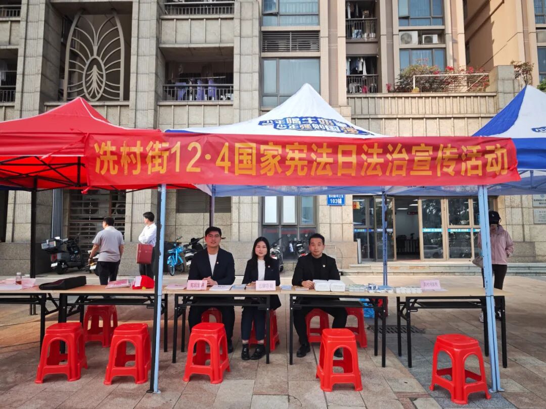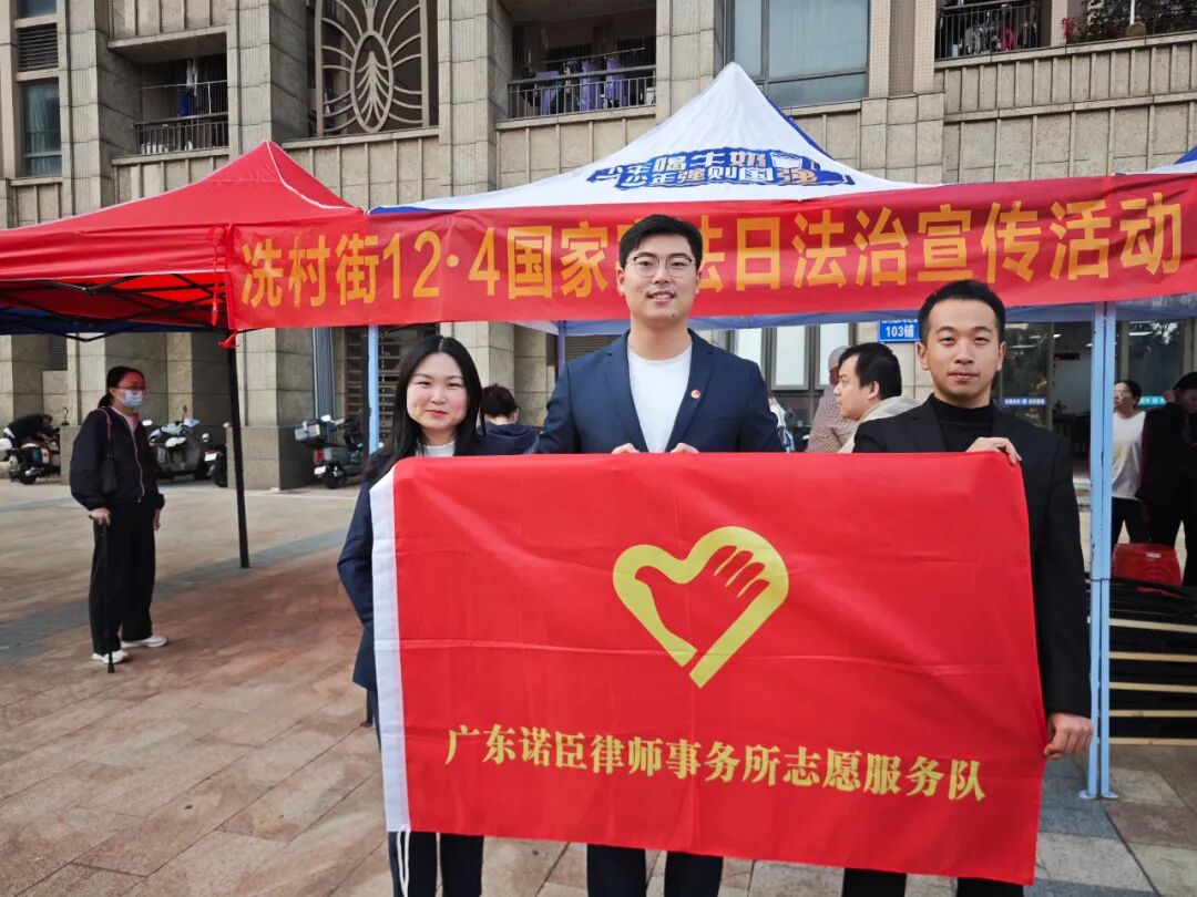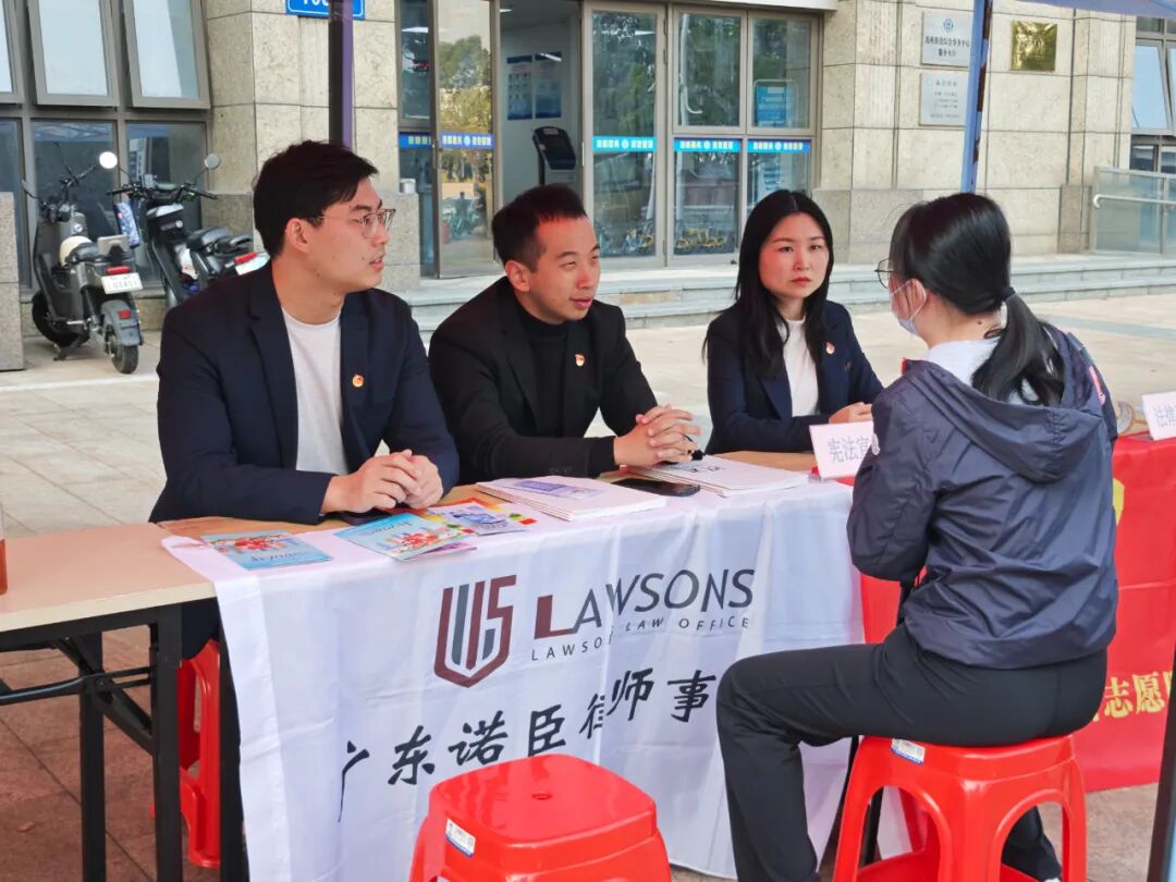 为进一步弘扬宪法精神、传播法治文化,在第十二个“国家宪法日”来临之际,广东诺臣律师事务所(以下简称“诺臣所”)团支部与志愿服务队积极响应号召,于12月4日走进天河区冼村街道,在综合保障中心门口举办公益法律咨询活动。诺臣所志愿服务队副队长陈冰锦律师、谢扬律师、李一飞律师作为代表参与,面对面倾听群众诉求,现场提供专业法律服务。