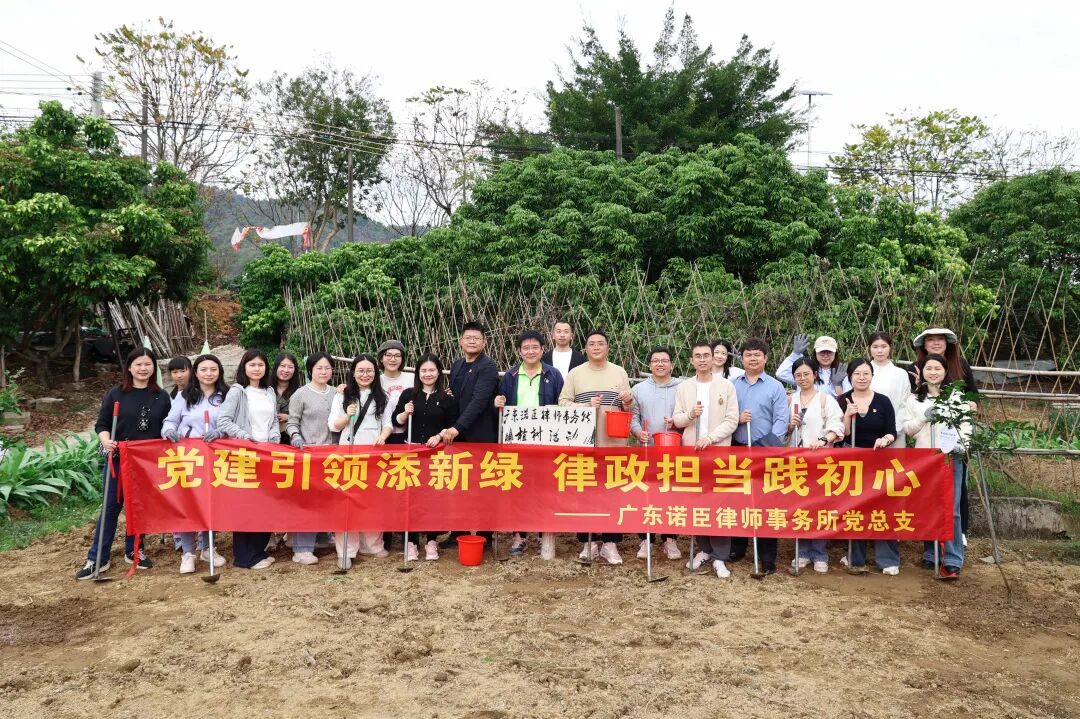 春和景明,草木新生。3月7日,在“三八”国际妇女节与植树节来临之际,广东诺臣律师事务所(以下简称“诺臣所”)党总支牵头,联合团支部、女律师工作委员会,组织律所党团员、女律师代表在从化宣星村开展“党建引领添新绿,律政担当践初心”主题活动。活动以党建为引领,紧扣百千万工程建设要求,以学雷锋月志愿服务为载体,凝聚巾帼合力,以植树添绿为载体,践行生态文明理念,充分展现新时代党团员与女律师昂扬向上、勇担使命的精神风貌。