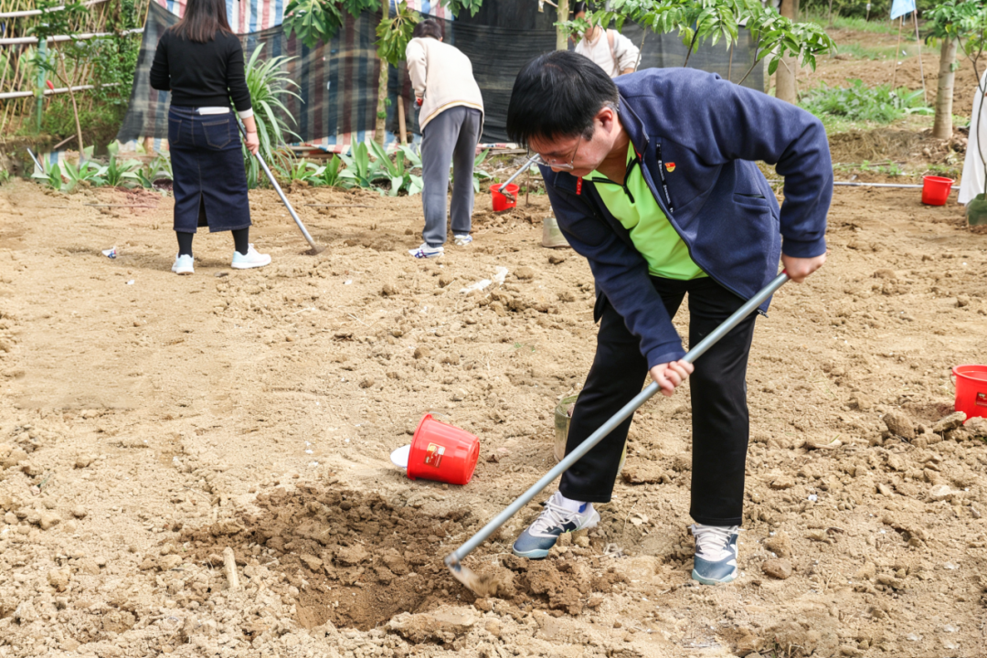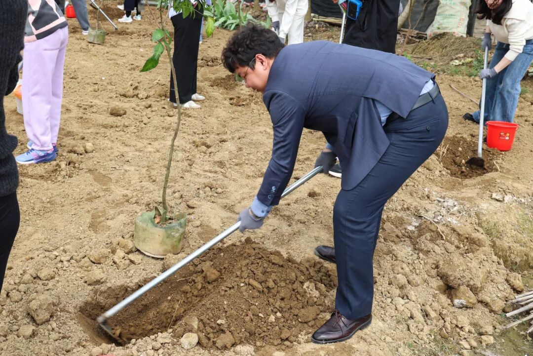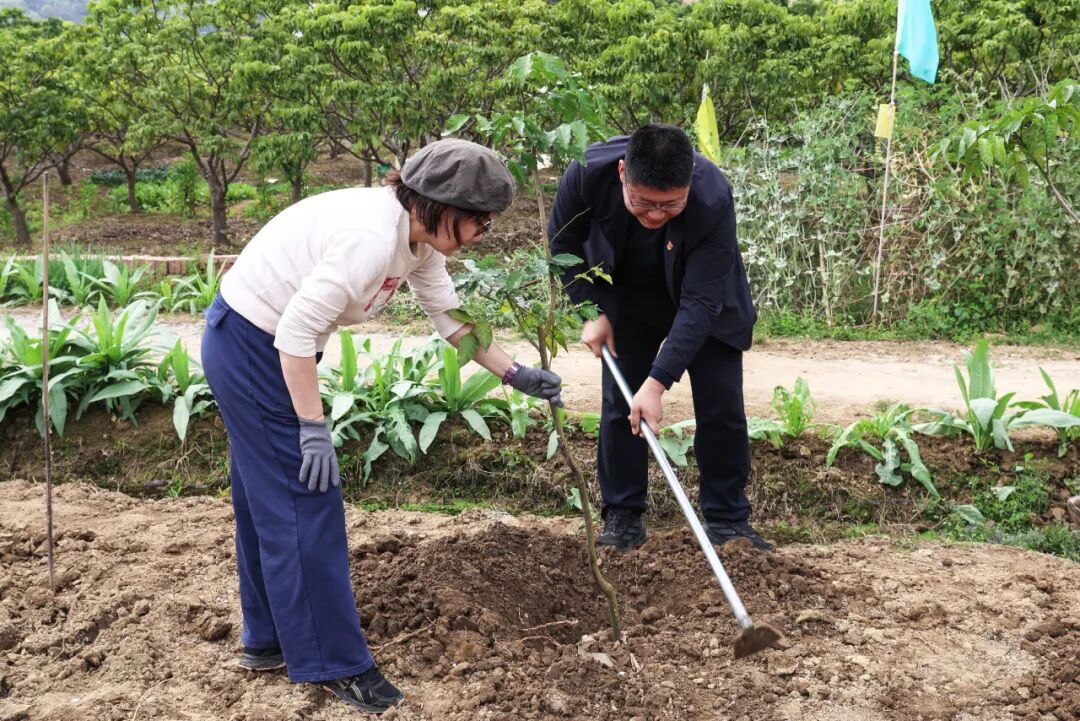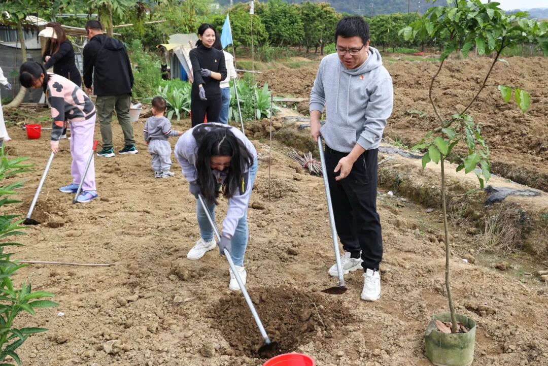 红色沃土上,暖意与干劲交织。党员律师带头垂范,青年团员朝气蓬勃,女律师们柔肩显担当,大家分工有序、默契协作,挥锹铲土、扶苗定根、填土夯实、提水浇灌,动作娴熟利落。指尖沾泥,初心滚烫,春日的宣星村里,欢声笑语与劳动的身影相映成趣,每一株新栽的树苗,既是对绿色未来的期盼,更是诺臣人团结奉献、践行公益的生动写照。